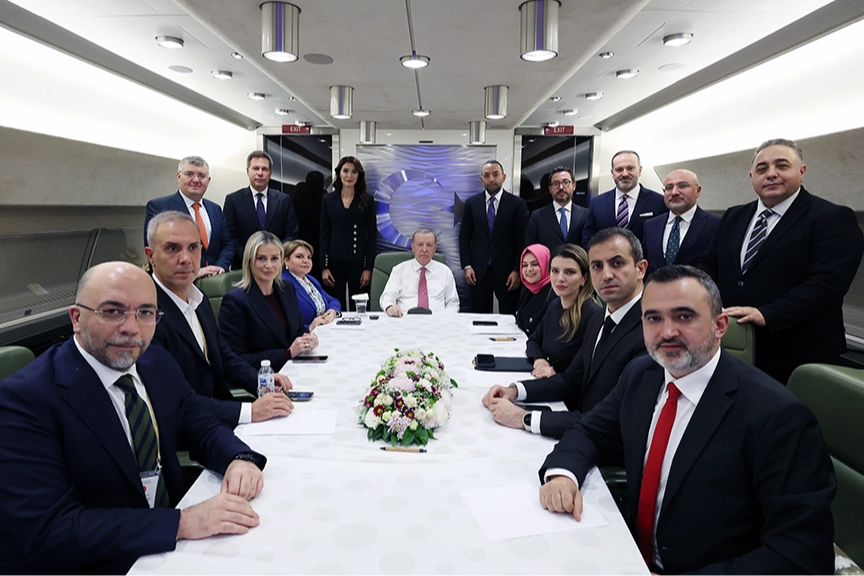 Cumhurbaşkanı Recep Tayyip Erdoğan, Türkmenistan'ın başkenti Aşkabat'ta düzenlenen "Uluslararası Barış ve Güven Forumu" sonrası Türkiye'ye dönüşünde uçakta gazetecilere açıklamalarda bulundu ve soruları yanıtladı.Türkmenistan'ın daimi tarafsızlığının ilanının 30. yıl dönümü etkinliklerine katıldığı Aşkabat ziyaretini tamamladığını belirten Erdoğan, bu etkinliklerin aynı zamanda Birleşmiş Milletler (BM) tarafından ilan edilen ve Türkiye'nin de ortak sunucu olduğu "Uluslararası Barış ve Güven Yılı" münasebetiyle tertiplenmesinin, kutlamalara ayrı bir mana kazandırdığını söyledi.Türkmenistan Milli Lideri ve Halk Maslahatı Başkanı GurbanguluBerdimuhamedov ve Devlet Başkanı Serdar Berdimuhamedov'a teşekkür eden Erdoğan, 3 yıl önce ziyaret ettiği Türkmenistan'la ortak tarih, dil, din ve kültüre dayanan münasebetleri her geçen gün pekiştirmenin gayretinde olduğunu ifade etti.Erdoğan, Türkmenistan'la ekonomik ve ticari işbirliğinin son derece güçlü durumda olduğuna işaret ederek, şöyle konuştu:"İş insanlarımız, Türkmenistan'ın bağımsızlığından bu yana yaklaşık 55 milyar dolar tutarında projeyi tamamladılar. Halihazırda 10 milyar dolar tutarında 19 proje yürütülüyor. Türkmenistan bu anlamda Rusya Federasyonu'ndan sonra firmalarımızın en çok proje gerçekleştirdikleri ikinci ülke konumunda. 2024 yılında 2 milyar doları aşan ticaret hacmimizi 5 milyar dolara yükseltmenin gayreti içindeyiz. İlişkilerimizin beşeri boyutuna da elbette son derece önem veriyoruz. Türkmen kardeşlerimizin üniversite eğitimi için Türkiye'yi ilk sırada tercih etmeleri bizim açımızdan memnuniyet verici. Bu gençlerimizin eğitimlerini tamamladıktan sonra Türkmenistan'a dönerek ülkelerinin kalkınmasına katkıda bulunmalarından memnuniyet duyuyoruz."Türkmenistan'ın, BM Genel Kurulu'nun 12 Aralık 1995 tarihli oturumunda kabul edilen kararla daimi tarafsızlık statüsü elde ettiğini anımsatan Erdoğan, "Bu statüyü 30 yıldır başarıyla sürdürüyor. Ayrıca tarafsızlık kavramını bir barış felsefesine dönüştürmek için de özel çaba sarf ediyor. Türkmenistan'ın bağımsızlığını ilk tanıyan ülke olarak, Türkmenistan'ın daimi tarafsızlık statüsünü destekleyen ülkelerin de başında yer aldık. Türkmenistan'ın tarafsızlık temelinde barış inşasına yönelik vizyonunu desteklemeyi sürdürüyoruz." açıklamalarında bulundu.Forumda yaptığı hitapta Türkmenistan'a desteğini tekrar vurguladığını belirten Erdoğan, ayrıca Türkiye'nin bölgesel ve küresel barışa yönelik yaptığı katkılara ve Gazze'de yaşanan insanlık dramına dikkat çektiğine işaret etti.