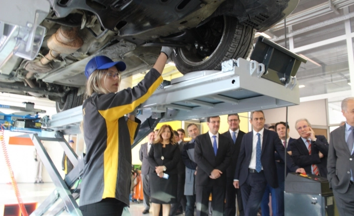 TOGG’A KALİFİYE ELEMAN DA YETİŞTİRECEK Okulun imkânlarından bahseden Sezer şöyle devam etti:“Milli Eğitim Bakanlığınca Ar-Ge Merkezi okul statüsü verilerek, yerli ve milli altyapıyla mesleki eğitim, üretim, tasarım ve istihdam ilişkisinin güçlendirilmesi de amaçlanmaktadır. Türkiye'nin Otomobili Girişim Grubunca (TOGG) Bursa'nın Gemlik ilçesinde yapımı süren fabrikada ihtiyaç duyulacak teknik elemanların yetiştirilmesi için okulumuz bünyesinde Motorlu Araçlar Teknolojisi Alanı'nda ilk kez “Elektrikli Araçlar Dalı” açıldı.