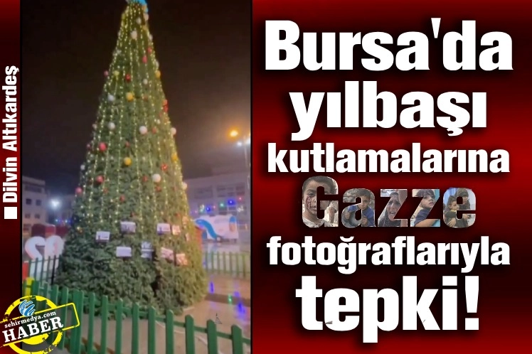 Eskişehir’den sonra Nilüfer Belediyesi Binası’nın önünde bir süredir devam eden Yılbaşı Çarşısı ve meydanın ortasına yerleştirilen yılbaşı çamı demokratik bir protestoya tanıklık etti. Bir grup genç meydana gelerek yılbaşı ağacının üzerini Gazze’deki katliamın fotoğrafları ile donattı. Yılbaşı ağacının Gazze fotoğrafları ile donattıktan sonra görüntüsünü alan gençler, ilahi eşliğinde protestolarını sosyal medyadan yayımladı. X’de @islambulda hesabından yayımlanan görüntüler, “"Hiç kutlarmı iman etmiş, Bir müslüman yılbaşı, Kutlar ise olmaz mı hiç, Müşriklerin en başı." sözleri ile yayımlandı.