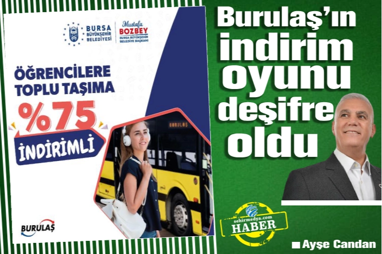 Belediyenin ulaşım zammı büyük tepki çekerken, özellikle bu tepkiyi düşürmek için uygulanan yöntem akıllara durgunluk verdi. Tam bilen ücretine zam yaparak 20 TL’ye yükselten Burulaş, öğrenci biletini 6 liradan 5 liraya indirdi. İndirimi ise tam bilet üzerinden yapılan oranlama ile kamuoyuna duyurdu. Yani çok bariz bir algı operasyonuna girişti. Sosyal medyada Asmedya42 isimli hesabın sahibi Atilla Bayat, yaptığı analiz ile Burulaş’ın doğru olmayan algı operasyonunu deşifre etti. İşte o hesaplama ve yorumu; “Öğrenciye yüzde 75 indirim hangi kalemde yapıldı. Bursa'da ulaşıma bugün itibariyle yüzde 68 oranında zam yapıldığı. Ardından öğrenciler için ise yüzde 75 oranında indirim yapıldığı açıklandı. AsMedya42 ekibi eski ile yeni tarifeleri sizin için yayınlıyor. Liste BURULAŞ sitesinde alındı. İki liste karşılaştırıldığında zammın yüzde 68 de fazla olan bölümlerininde olduğu görülmektedir. Kısa 13.5 TL 20 TL Metro ise 12 TL den 20 TL yükseltildi. Uzun hat abonman 1000 TL den 1700 TL oldu burada 70 zam yapılmış oldu. İşin öğrenci kısmı ise yüzde 75 indirim denilen zamanda önce 6 TL olan 5 TL olarak yani gibi indirim yapıldığı görülmektedir. Öğrenciler için abonmanlarda indirime gidilmedi. Öğrenci abonman 200 TL'den 340 TL ye yükseltildi. Zam oranı yüzde 70. Sanırım önce yüzde 68 zam sonrasında yüzde 75 indirime gidilmiş. Ne diyelim her ikisi de ekonomik şartlar nedeniyle yapılmış. Bir garip hesap: 6 TL’ye % 68 zam=10₺ 10 TL’ye %75 indirim=2.5₺” ( Ayşe Candan )