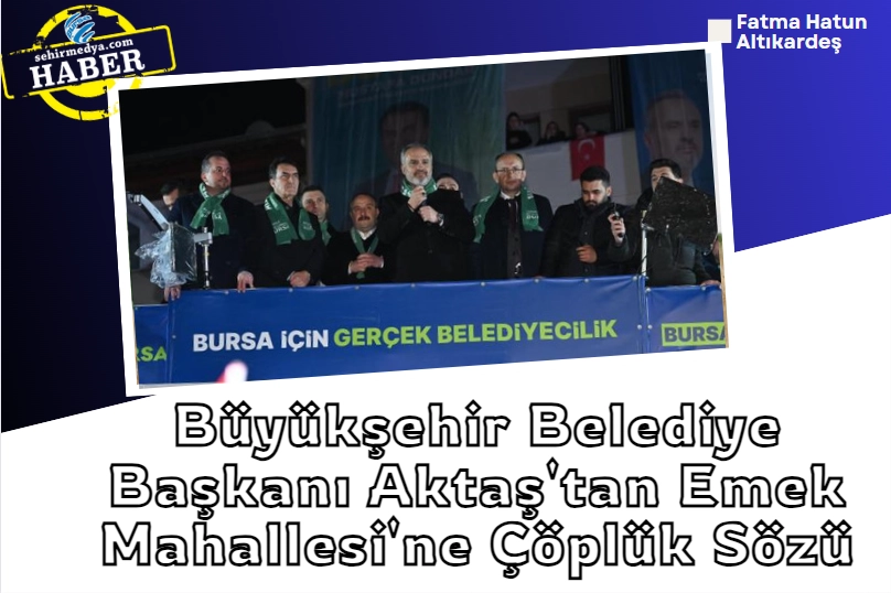 Aktaş, 2019'dan beri Hamitler'deki çöplüğü kaldırmak için mücadele ettiklerini ve çöplüğün kaldırılacağına dair kararlı olduklarını vurguladı. Ayrıca, altyapıdan ulaşıma, kültürden spora kadar birçok alanda yapılan çalışmaları ve yeni döneme dair vizyon projelerini açıkladı. Aktaş'ın konuşması büyük bir ilgiyle karşılandı ve sık sık alkışlarla kesildi. Emek Mahallesi'nin kentsel dönüşümü başlatacaklarını belirten Aktaş, bu dönemin Osmangazi için önemli bir dönem olacağını ifade etti. Cumhur İttifakı Osmangazi Belediye Başkan Adayı Mustafa Dündar ise: "Emek'te merkezde ne varsa aynısı olacak dedik. Bugün bakıyoruz ki Emek bir cazibe merkezi olmuş. Bundan sonraki süreçte 11 farklı yerde depreme dayanıklı konut üretmeye devam edeceğiz. 31 Martta sizlerin bize vereceği destek ile devam edeceğiz. Osmangazi'de Mustafa Dündar, Büyükşehir'de Alinur Aktaş diyorsak bu hizmetler devam edecektir." dedi.