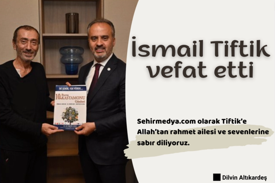 İsmail Tiftik, uzun süredir kanser hastalığı ile mücadele ediyordu. Tiftik’in vefat haberini Osmangazi Belediye Başkanı Mustafa Dündar duyurdu. Geçtiğimiz günlerde Bursa Büyükşehir Belediye başkanı Alinur Aktaş İsmail Tiftiği ziyaret ederek geçmiş olsun dileklerini iletmiş. Sehirmedya.com olarak Tiftik’e Allah’tan rahmet ailesi ve sevenlerine sabır diliyoruz.