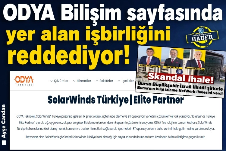 Sehirmedya.com Bursa Büyükşehir Belediyesi’nin NetWork izleme ve yazılım ihalesiyle ilgili belgelerle ortaya koyduğu haber gündeme bomba gibi düşerken, habere konu olan ODYA Bilişim yayınladığı açıklama ve noter kanalıyla gönderdiği tekzip metninde, kendi internet sayfalarında yer verdiği işbirliğini reddetti. ODYA Bilişim Teknolojileri AŞ’nin ortaklarının Türk vatandaşı olduğu Türk şirketi olduğuna yer verilen açıklamada, İsrail merkezli hiçbir firmayla organik, ticari ve teknik bağı olmadığını ileri sürdü. Şirketin kişisel veri elde etme, depolama, işlenme ya da aktarma faaliyeti yürütmediğinin dile getirildiği açıklamada, Büyükşehir Belediyesi’nin işinde hiçbir kişisel veri toplanmadığı, işlenmediği, saklanmadığı yada üçüncü şahıslara aktarılmadığına yer verildi. Açıklamada, “Sistem, yalnızca ilgili kurumun kendi altyapısı içinde çalışmakta olup, arıza ve performans ölçümü dahil, teknik yönlerden dahi dışarıya veri aktarımı söz konusu değildir. Sistem tarafından ve yalnızca ilgili kurum için oluşturulan raporlama teknik hata veya performans göstergeleri ile sınırlıdır” denildi.