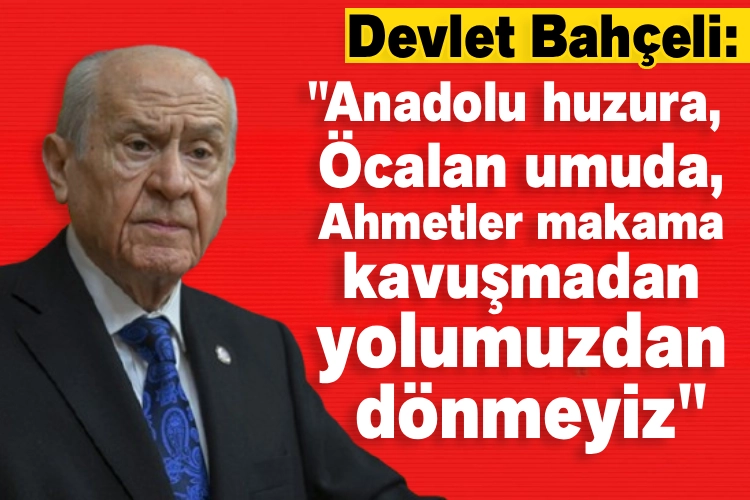 Konuşmasının sonunda dikkat çeken ifadeler kullanan Bahçeli, “Değerli arkadaşlarım; Anadolu huzura, Öcalan umuda, Ahmetler makama ve Demirtaş yuvasına dönünceye kadar kararımız nettir” dedi.