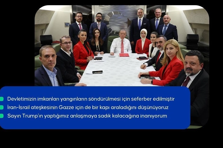 Cumhurbaşkanı Erdoğan, bir basın mensubunun, İran'daki ateşkes sonrasında gözlerin Gazze'ye çevrildiğini ve burada da bir ateşkesin beklendiğini belirterek, özellikle ABD'nin İsrail'i ateşkese zorlayıcı adımlar atmasının beklenip beklenmediği sorusu üzerine, "Gazze'nin kaybedecek vakti yok, Gazze'de insanlık can çekişiyor. İnsanların açlığa mahkum edilmesinin, üzerlerine bombaların yağdırılmasının görmezden gelinmesi insanlıkla bağdaşmıyor. Bir an önce ateşkesin sağlanması ve insani yardımların oraya en etkin biçimde ulaştırılması için çabalıyoruz. Türkiye olarak diplomatik gayretlerimizi hiç kesmedik ve her muhatabımızla oradaki insani tablonun vahametini konuşuyoruz." ifadelerini kullandı.