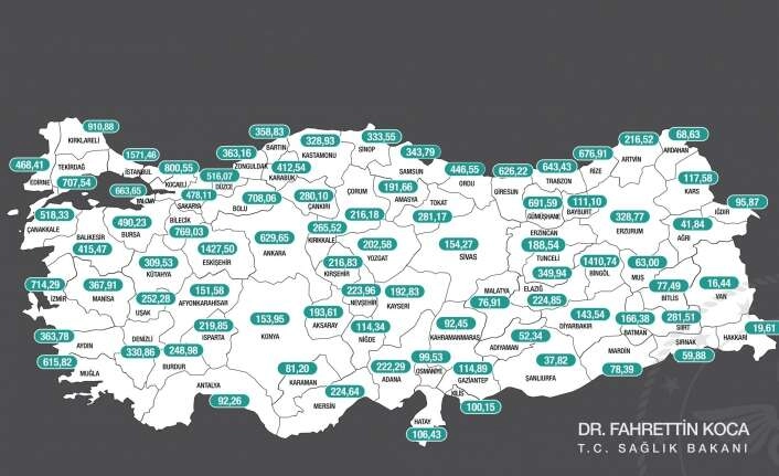 Verilere göre; 8-14 Ocak haftasında 100 binde koronavirüs vaka sayısı İstanbul'da 1571,46, İzmir 714,29, Ankara'da 629,65 oldu.