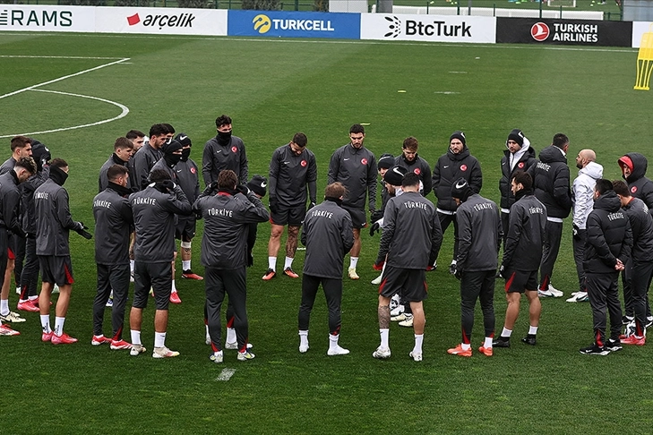 Türkiye Futbol Federasyonundan (TFF) yapılan açıklamaya göre, Riva Hasan Doğan Milli Takımlar Kamp ve Eğitim Tesisleri'nde teknik direktör Vincenzo Montella yönetiminde sağanak altında gerçekleştirilen antrenmana, seyahat programları sebebiyle dünkü çalışmada yer alamayan Demir Ege Tıknaz, Hakan Çalhanoğlu, Kerem Aktürkoğlu ve Orkun Kökçü de katıldı. Bu isimlerin yanı sıra ağrıları sebebiyle dün takımla çalışamayan kaleci Mert Günok da antrenmanda yer aldı. Tedavisi süren Merih Demiral ile ağrıları bulunan Emre Mor idmana katılmadı.