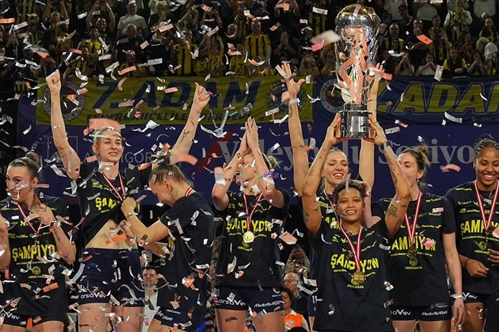 Eczacıbaşı Dynavit'e ikincilik madalyaları verildikten sonra şampiyon Fenerbahçeli oyuncular da madalyalarını aldı.