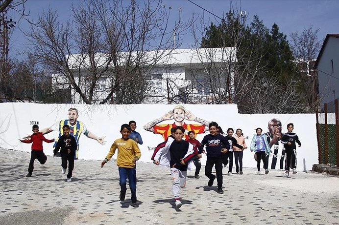 Öğrencilerden İsminur Biberoğlu, futbolcuların resimlerinin okul duvarına çizilmesinden mutluluk duyduğunu söyledi.