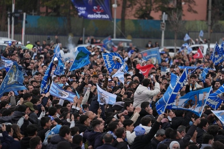Maç sonrası Erzurumspor FK'lı oyuncular, taraftarların bulunduğu tribüne giderek büyük sevinç yaşadı.