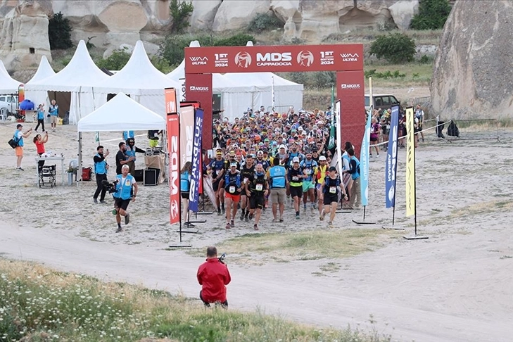 42 ülkeden yaklaşık 300 koşucunun katılımıyla gerçekleştirilen yarışa katılacak sporcular, geceyi başlama çizgisinin bulunduğu Kılıçlar Vadisi'ndeki çadırlarda geçirdi.