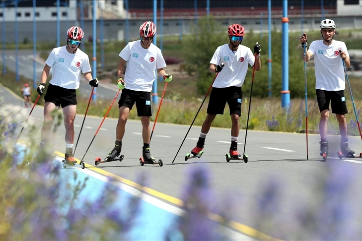 Tekerlekli kayak antrenmanıyla yaz sıcağında 20 gün güç depolayacak sporcular, İtalya'daki olimpiyat oyunlarında madalya hedefliyor.