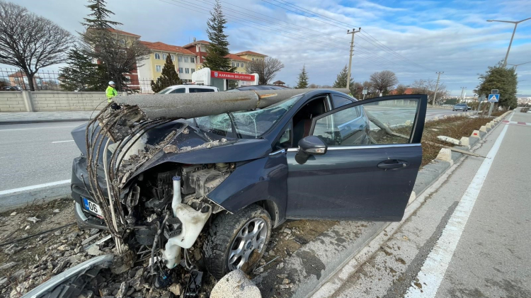 Karaman'da sağlık çalışanının kullandığı otomobil kontrolden çıkarak refüjdeki beton aydınlatma direğine çarptı. Otomobilin üzerine devrilen direk araçta büyük çapta maddi hasara neden olurken, sağlık görevlisi yaralandı.