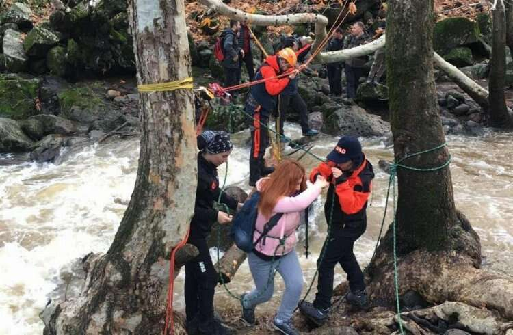 Doğa yürüyüşünde mahsur kalan grubun geçişini AFAD ekipleri sağladı