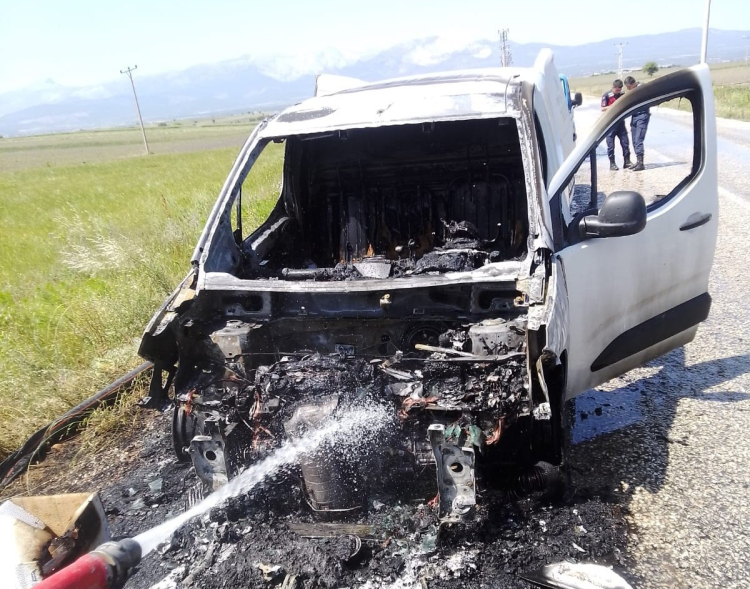 Sürücü Musa Ç., yanmaya başlayan araçtan çıkmayı başardı. Bir anda aracı kaplayan alevleri söndüremeyen sürücü, 112 Acil Çağrı Merkezini arayarak, yardım talebinde bulundu. İhbar üzerine bölgeye Tavas ve Karahisar itfaiye ekipleri sevk edildi. İtfaiyenin çalışması sonucu yangın söndürülürken, yanan hafif ticari araç metal yığınına döndü. Yangınla ilgili soruşturma başlatıldı.