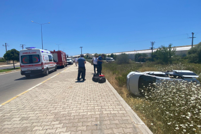 Antalya'nın Serik ilçesinde şarampole devrilen hafif ticari aracın sürücüsü kazayı yara almadan atlatırken, yolcu konumundaki eşi ise yaralandı.