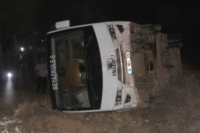 İşçileri taşıyan otobüs eşeğe çarparak devrildi: 15 yaralı