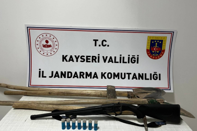 Kayseri'nin Akkışla ilçesinde İl Jandarma Komutanlığı ekiplerince yapılan çalışmalarda; kaçak kazı yapan 2 kişi suçüstü yakalandı.