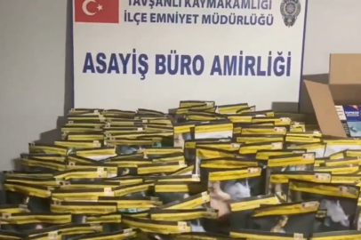 Ş.Ş.Ç.'nin ikametinde 2 adet sigara sarma makinesi, 30 bin 600 adet boş makaron, 3 bin 950 adet dolu makaron, 24,1 kilo açık kıyılmış tütün, 141 adet 100 gramlık kapalı paket tütün ele geçirildi.