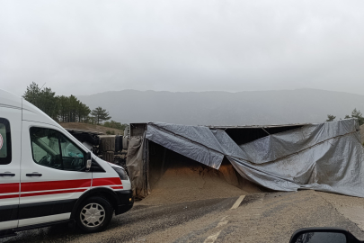 Kahramanmaraş'ta kamyonun devrilmesi sonucu sürücü yaralandı.