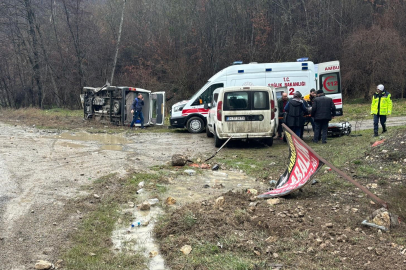 Bolu'da yağışlı havada kontrolden çıkan bir minibüs, yol kenarına devrildi. Meydana gelen kazada 2 kişi yaralandı.