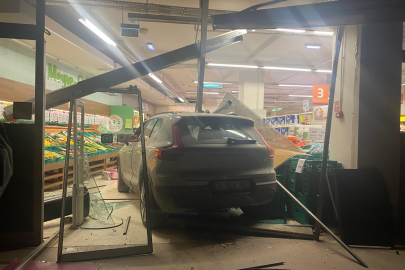 Kocaeli'nin Kartepe ilçesinde sürücüsünün kontrolünden çıkan otomobil, marketin sebze reyonuna daldı. Kazada 2 kişi yaralandı.