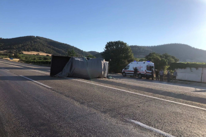 Köpeğe çarpmamak için sürücüsünün direksiyon kırdığı kamyon devrildi: 2 yaralı