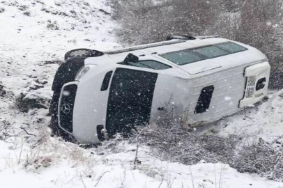 Sürücüsünün kimliği ve plakası henüz öğrenilemeyen, bir şirkete ait minibüs, kar yağışının etkili olduğu Bingöl-Diyarbakır kara yolunun Şehitköy mevkisinde şarampole devrildi.