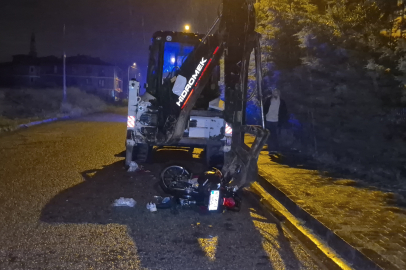 Motosiklet, park halindeki 10 tonluk iş makinesine çarptı: 2 yaralı