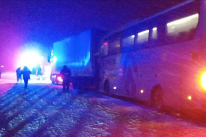 Kar yağışının etkili olduğu Sivas-Erzincan kara yolunun Gölova ilçesi Çobanlı mevkisinde, 34 ARS 576 plakalı yolcu otobüsü, 41 ABN 013 plakalı tıra arkadan çarptı.