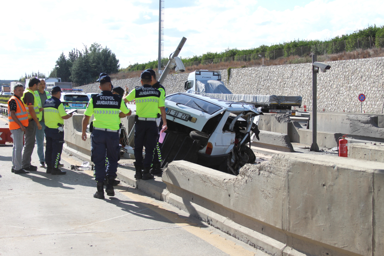Mersin'de kontrolden çıkarak otoyol gişelerindeki beton bariyere çarpan otomobildeki 1'i kadın 2 kişi hayatını kaybetti.