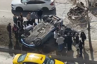 Refüje çarpan araç ters döndü: Sürücü yara almadan kurtuldu