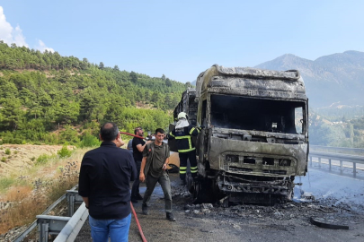 Olay, saat 16.00 sıralarında Burdur'un Çeltikçi ilçesi Tekkeköy mevkisi D-650 kara yolu üzerinde meydana geldi. Edinilen bilgilere göre, Remzi Y. (49) idaresindeki 06 CNU 487 plakalı tırın motor bölümünden bir anda dumanlar yükselmeye başladı. Alevleri fark eden sürücü, aracı emniyet şeridine çekerek itfaiyeyi aradı. İhbar üzerine olay yerine gelen itfaiye ekipleri, tırdaki yangına müdahale ederek alevleri kontrol altına aldı. Tamamen yanan tır kullanılamaz hale gelirken otluk alan sıçrayan alevler de itfaiye ekiplerince kısa sürede söndürüldü. Olayla ilgili inceleme başlatıldı.
