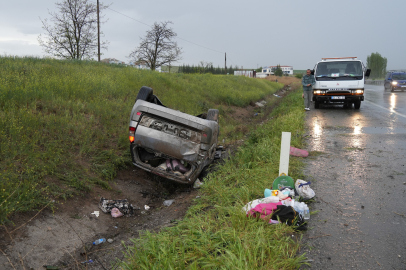 Yağmurun etkisiyle kayganlaşan yolda otomobil takla attı: 4 yaralı