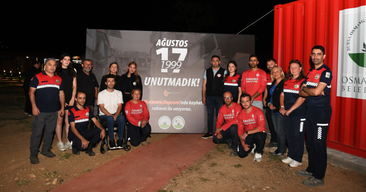 Soğanlı Millet Bahçesi’nde Osmangazi Belediyesi Afet İşleri Müdürlüğü ve Osmangazi Kent Konseyi tarafından düzenlenen 17 Ağustos 1999 Marmara Depremini 26’ın yıl dönümü anma programına Osmangazi Kent Konseyi Başkanı Fatma Çil Yılmaz, Osmangazi Belediyesi Birim Müdürleri, Bursa’da görev yapan arama kurtarma birimleri, muhtarlar ve vatandaşlar katıldı. 17 Ağustos 1999 Marmara Depreminin 26’ıncı yıl dönümünün ilk saatlerinde başlayan anma programında depremde hayatını kaybedenler ve tüm şehitler için saygı duruşunda bulunuldu.Anma programının katılanlar Osmangazi Belediyesi tarafından Soğanlı Millet Bahçesi’ne yerleştirilen içinde 63 farklı kalemde afet müdahale ve insani yardım malzemesi bulunan Afet ve Acil Durum Müdahale İstasyonunu gezme imkanı buldu.