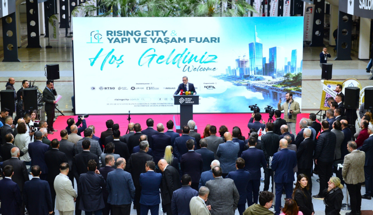 Türkiye’nin üretim üssü Bursa, fuarcılıkta ve kongrede marka etkinliklere ev sahipliği yapmaya devam ediyor. İnşaat ve gayrimenkul sektörünü buluşturan Rising City Yapı ve Yaşam Fuarı, Bursa Fuar Merkezi’nde kapılarını açtı. 26 Nisan 2026 tarihine kadar ziyaretçilerini ağırlayacak fuarın açılış töreni, BTSO Yönetim Kurulu Başkanı İbrahim Burkay’ın yanı sıra Vali Yardımcısı Salih Altun, İMSİAD Başkanı Şeref Demir, Mimarlar Odası Bursa Şubesi Başkanı Şirin Rodoplu Şimşek, BESOB Başkanı Fahrettin Bilgit, BTSO Yönetim Kurulu, meclis ve komite üyeleri, ilçe oda ve borsaların başkanları ile sektör temsilcileri katıldı.