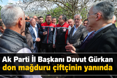 Ak Parti Bursa İl Başkanı Davut Gürkan, Kestel ve Gürsu ilçelerinin ardından Tarım ve Orman Bakan Yardımcısı, Ak Parti Bursa Milletvekilleri, Bursa Valisi Erol Ayyıldız ile birlikte İznik ilçesinde don mağduru çiftçileri ziyaret etti. Davut Gürkan bu hafta içinde dağ yöresindeki çiftçileri ziyaret edecek. Yaraların sarılacağını belirten Ak Parti İl Başkanı Davut Gürkan, "Cumhurbaşkanımızın talimatlarıyla çiftçimizi mağdur etmeyeceğiz. Onlara geçmişte olduğu gibi bugün de destek olacağız. Her bir çiftçimizin derdi bizim derdimiz" dedi.