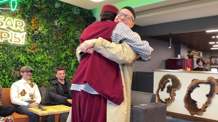 Bursa’da teknik alt yapısı oluşturulan Hisar Kapısı isimli bir sosyal medya kanalından, Sait Şaşmaz’ın yapay zeka ile Almanca’ya çevirilen müslümanlığı anlatan konuşmaları dinlediklerini belirten iki Alman genci, bu platformdan tanıştıkları Türk arkadaşları ile görüşmek. Ramazanı ve bayramı çoşkulu yaşamak için Bursa’ya geldiler.