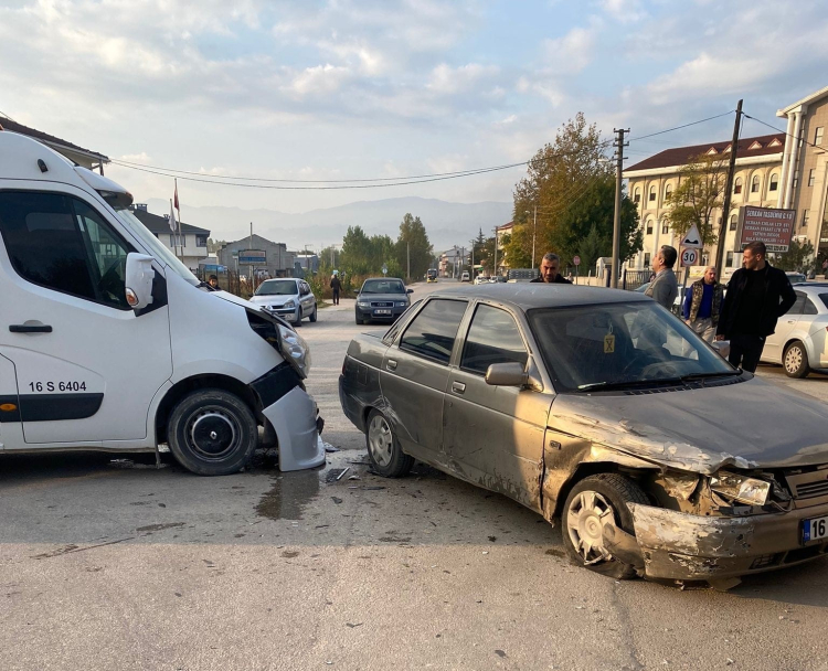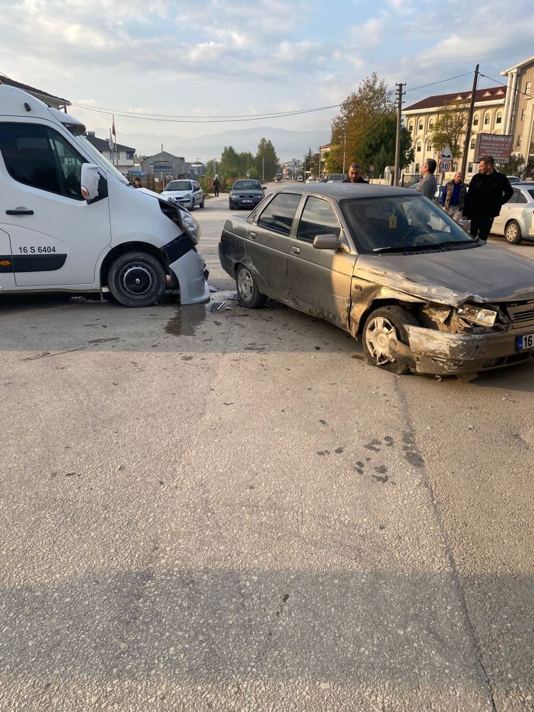 Kaza saat 09.00 sıralarında Akhisar mahallesi 2. Fatih caddesinde meydana geldi. 2. Fatih caddesinde seyir halinde olan Sürücü Selver Ş.(35) yönetimindeki 16 LKS 44 plakalı otomobil ile ara sokaktan çıkan Davut Ö. Yönetimindeki 16 S. 6404 plakalı servis minibüsü çarpıştı. Kaza sonucu otomobilin sürücüsü yaralandı. Yaralı kaza yerine sevk edilen Ambulansla İnegöl Devlet Hastanesine kaldırıldı.