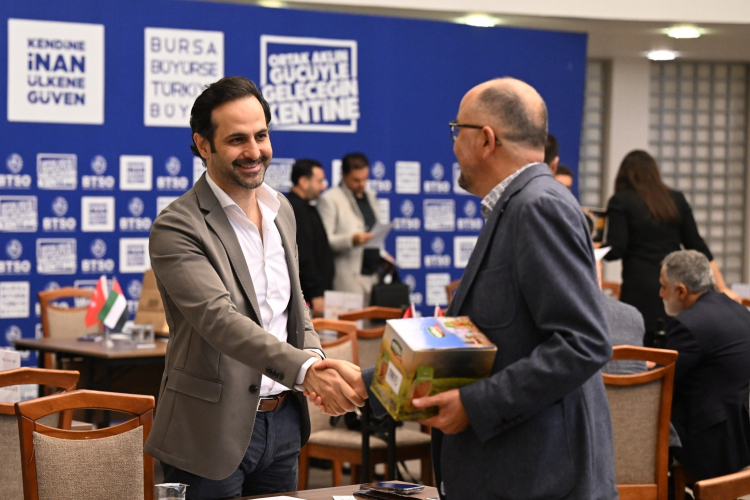 BTSO, ihracat odaklı faaliyetlerini aralıksız sürdürüyor. BAE Ankara Büyükelçiliği tarafından oluşturulan Gıda Sektörü Alım Heyeti, Bursa’da düzenlenen ikili iş görüşmeleri etkinliğinde BTSO üyeleri ile bir araya geldi. BAE Ankara Büyükelçisi Saeed Thani Hareb Al Dhaheri ve BAE Franchise Derneği Yönetim Kurulu Başkanı Noor Altamimi’nin de eşlik ettiği ticaret heyetini, BTSO Yönetim Kurulu Başkan Yardımcısı Cüneyt Şener ve Meclis Başkan Yardımcısı Murat Bayizit ile Gıda ve Paketli Ürünler Konseyi Başkanı Burhan Sayılgan karşıladı. Gün boyu devam eden etkinlikte, Bursalı firmalar yoğun görüşmeler gerçekleştirilirken, yeni iş birliklerinin de temelleri atıldı.