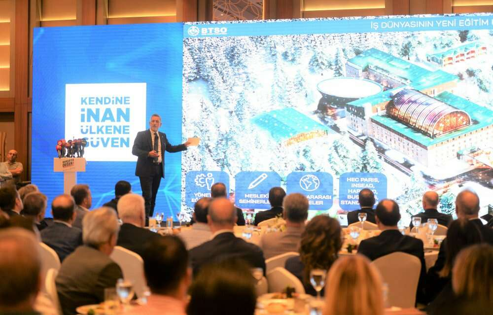 Bursa Ticaret ve Sanayi Odası (BTSO) Yönetim Kurulu Başkanı İbrahim Burkay, 2013 yılından bu yana Bursa iş dünyasının çatı kuruluşu BTSO’da hayata geçirdikleri projeleri ve yeni döneme ilişkin hedeflerini iş dünyasının yoğun katılım sağladığı toplantıda paylaştı. BTSO Başkanı İbrahim Burkay, Bursa iş dünyasının desteği, kentteki güçlü sinerji ve ortak akılla yaklaşık 10 yılda kent ve ülke ekonomisi tarihine birçok makro projeyi kazandırdıklarını belirterek, “Güçlü bir vizyon, güçlü bir strateji, güçlü bir ekonomi ve güçlü bir nesil hedefiyle projeler geliştirdik. Biliyoruz ki ne yapsak Bursa’mız için az. Ne yaptıysak Bursa’ya değer. Yeni dönemde de sadece Bursa’nın değil, Türkiye’nin başarı hikayesini hep birlikte yazacağız.” dedi. Sheraton Otel’de düzenlenen programa, BTSO Meclis ve Meslek Komitesi ile Yüksek İstişare Kurulu üyelerinin yanı sıra iş dünyası kuruluşlarının temsilcileri, OSB başkanları ve SİAD’ların yöneticilerinin yer aldığı 1.000’i aşkın iş insanı katıldı. Programda Başkan İbrahim Burkay, son 10 yılda yaptığı çalışmaları ve gelecek hedeflerine ilişkin detaylı bir sunum yaptı.