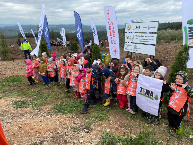 Türkiye'nin dört bir yanında orman varlığını artırmayı, çevre farkındalığını güçlendirmeyi ve birçok canlıya yaşam alanı sağlamayı hedefleyen 81 İlde 81 Orman Projesi, Türkiye İş Bankası'nın 100'üncü yılında yeniden hayata geçirildi. İş Bankası, Orman Genel Müdürlüğü ve TEMA Vakfı iş birliğinde ilki 2008-2017 yılları arasında gerçekleştirilen projenin yeni aşamasında, Bursa'da dikim töreni düzenlendi. Yüzde 45'i ormanlık alanlardan oluşan Mudanya ilçesindeki Altıntaş köyünde yer alan 6 hektarlık alanda 10 bin fidan toprakla buluştu. Programa Mudanya Kaymakamı Ayhan Terzi, Mudanya İlçe Milli Eğitim Müdürü Suat Topal, Mudanya Orman İşletme Şefi Selçuk Ayyıldız, Türkiye İş Bankası Bursa Bölge Satış Müdürü Maksut Özen, TEMA Vakfı Genel Müdür Yardımcısı Çiğdem Akça ve TEMA Vakfı gönüllüleri, öğrenciler ve bölge halkı katıldı.