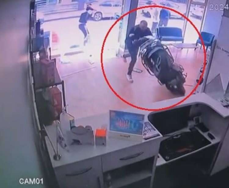 Bursa’da motosikletin üstünde arkadaşıyla konuşan vatandaş, elini gaz pedalında unutunca dükkana daldı. O anlar güvenlik kamerasına yansıdı.