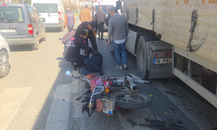 Kaza, saat 12.15 sıralarında Orhangazi'de Yalova-Bursa kara yolu şehir merkezi geçişinde meydana geldi. Edinilen bilgilere göre, Bursa'dan Yalova yönüne seyreden Mustafa Can (64) yönetimindeki 16 PAC 01 plakalı tır, eski kaymakamlık lojmanı kavşağına geldiği sırada trafikte ani yavaşlama yaşanması üzerine önce Zakaria Alhamo Alshikho (43) idaresindeki 16 MT 056 plakalı motosiklete, ardından ışıklarda bekleyen Durmuş Coşkun (50) yönetimindeki 50 FL 658 plakalı kamyona çarptı. Çarpmanın etkisiyle savrularak tırın altında kalmaktan son anda kurtulan motosikletteki Suriye uyruklu çift ile 12 yaşındaki oğulları yaralandı. İhbar üzerine olay yerine çok sayıda ambulans ve itfaiye ekibi sevk edildi. Kazada araçta sıkışan tır sürücüsü Mustafa Can itfaiye ekiplerinin yaklaşık yarım saat süren çalışmasının ardından bulunduğu yerden çıkarıldı. Yaralılar olay yerine gelen ambulanslarla Orhangazi Devlet Hastanesi'ne kaldırıldı.