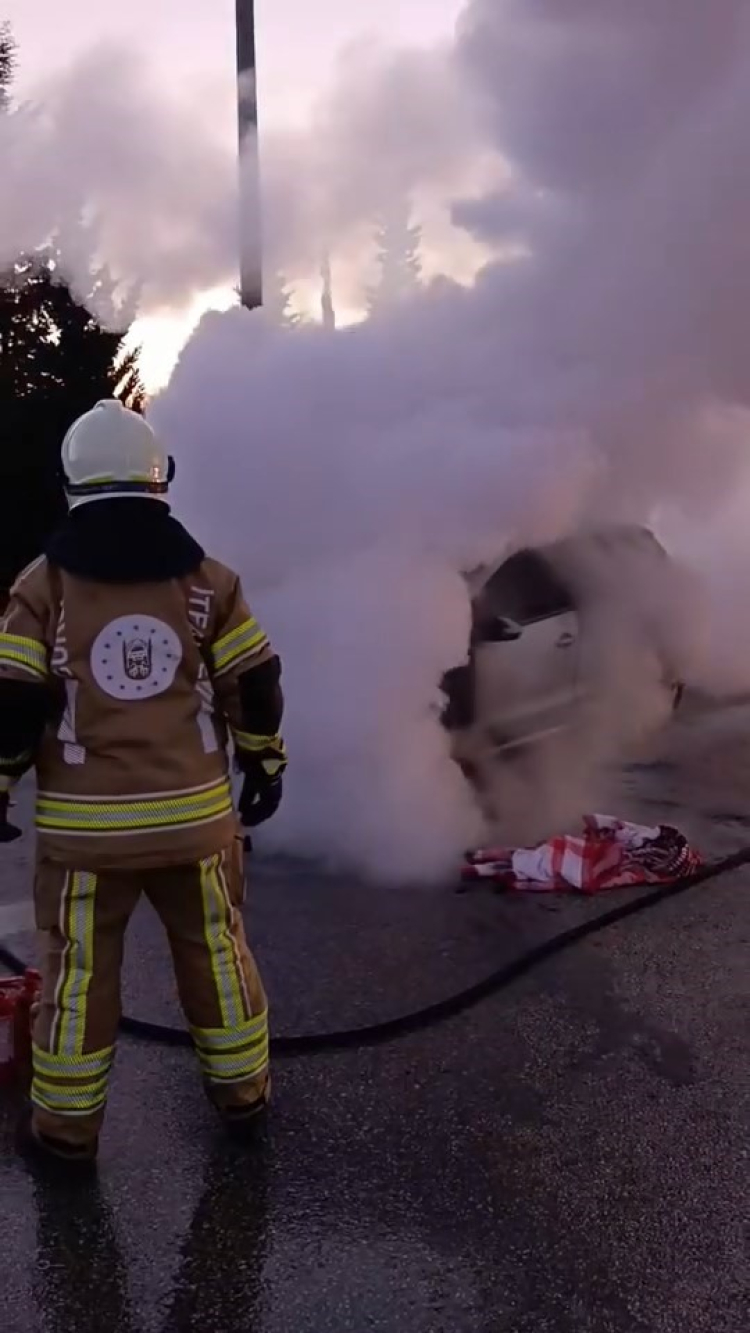 Olay, Nilüfer ilçesi Görükle Mahallesi'nde meydana geldi. Edinilen bilgiye göre, İstanbul-İzmir otobanına çıkmak için ilerleyen otomobilin motor kısmından dumanlar yükselmeye başladı. Volkswagen marka otomobilini yolun kenarına çeken sürücü, yangın tüpüyle müdahale etmek istedi. Alevlerin bir anda çoğalmasıyla vatandaşlar da araçlarından aldıkları yangın tüpleriyle destek olmaya çalıştı. İhbar üzerine olay yerine itfaiye ekipleri gelirken, otomobilin motor kısmı tamamen küle döndü.