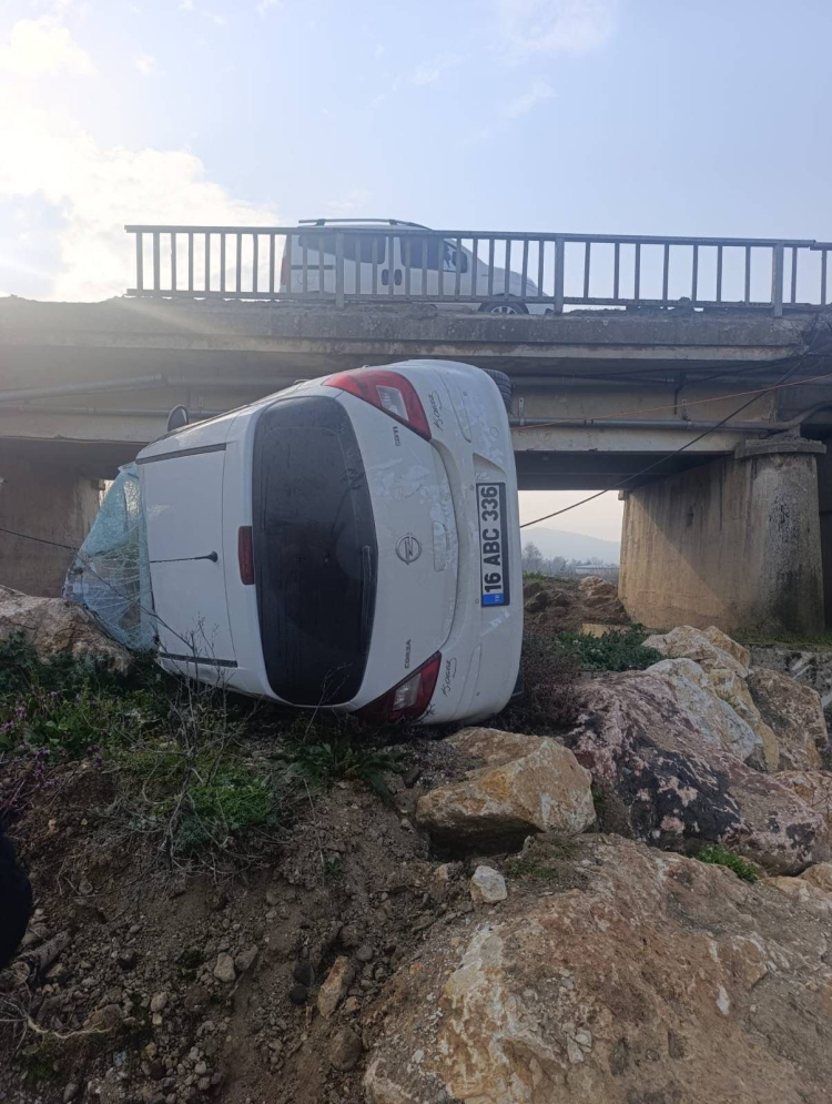 Bursa'da kontrolden çıkan araç köprüden uçtu