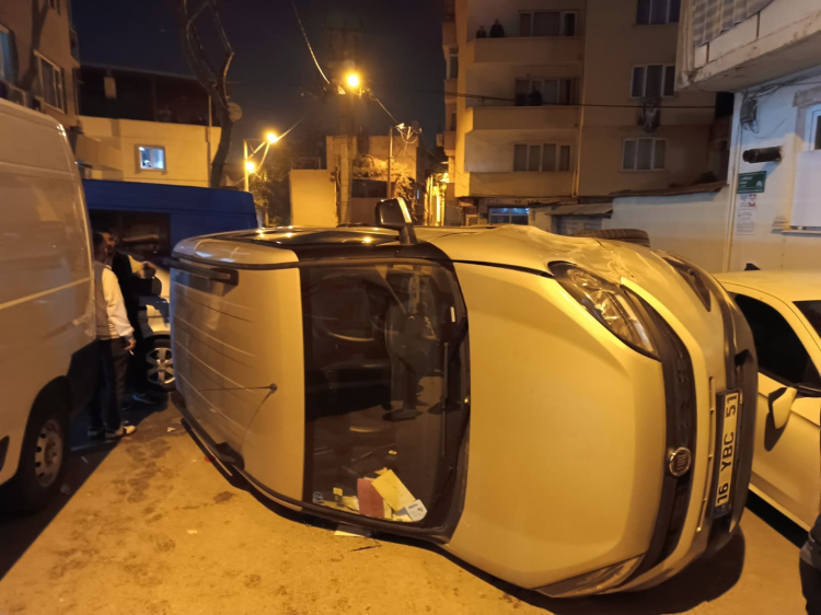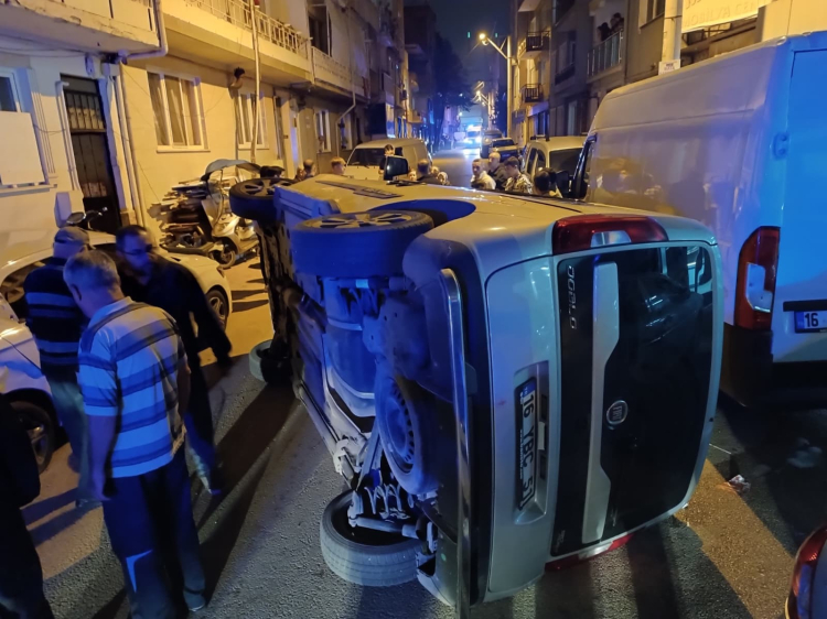 Kaza, Osmangazi ilçesinde saat 20.30 sıralarında Selamet Mahallesi 1'inci Ordulu Sokak'ta meydana geldi. M.A. idaresindeki 16 YBC 51 plakalı hafif ticari araç, sürücüsünün direksiyon hakimiyetini kaybetmesi sonucu park halindeki otomobile çarptı. Çarpmanın etkisiyle araç yan dönerken, içerde bulunan yolculardan biri yaralandı. Kazanın ardından sürücü ile birlikte araçta bulunan 4 kişi çevredeki vatandaşların yardımıyla dışarı çıkarıldı. İhbar üzerine olay yerine sağlık, itfaiye ve polis ekipleri sevk edildi. Sağlık ekipleri yaralıya olay yerinde ayakta tedavi uyguladı.