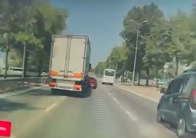 Kaza, Bursa'nın en işlek Ata Bulvarında meydana geldi. Bir aracın kamerasına yansıyan görüntülerde, şeritlerinden hareket eden araçlar, lambaları geçince yön değiştirmek istedi. Sol şeritten ilerleyen tır, beyaz otomobilin ilerlediğini görünce orta şeride geçmek istedi. Ancak orta şeritte kör noktasında kalan kırmızı aracı fark etmedi. Direksiyonu sağa kırmasıyla birlikte, kırmızı araç tırın önünü yan dönerek sürüklenmeye başladı. Kısa süre sonra otomobili fark eden tır sürücüsü, durdu.
