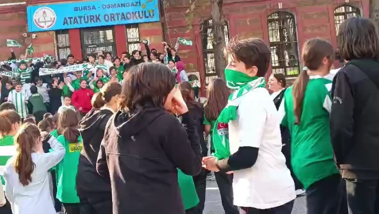 Bursa'da öğrenciler Bursaspor kıyafetleriyle okula geldi