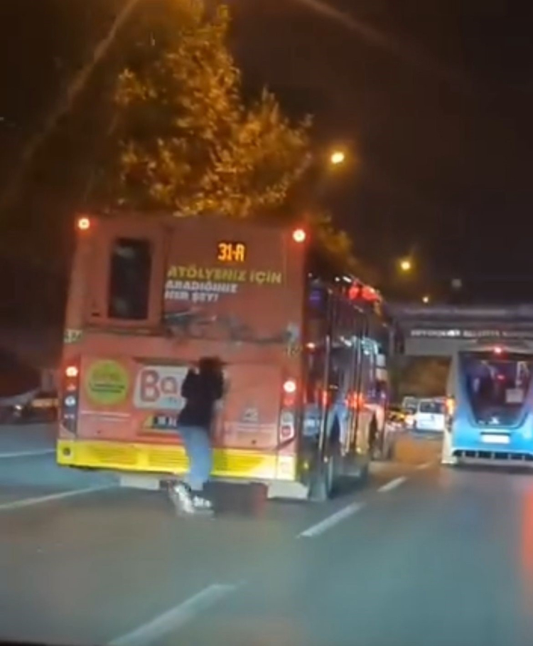 Bir genç, şehir içi ulaşımda kullanılan otobüsün arkasına tutunarak tehlikeli şekilde yolculuk yaptı. Canını hiçe sayan kişi, hem kendi hayatını hem de trafikteki diğer vatandaşların güvenliğini tehlikeye attı.